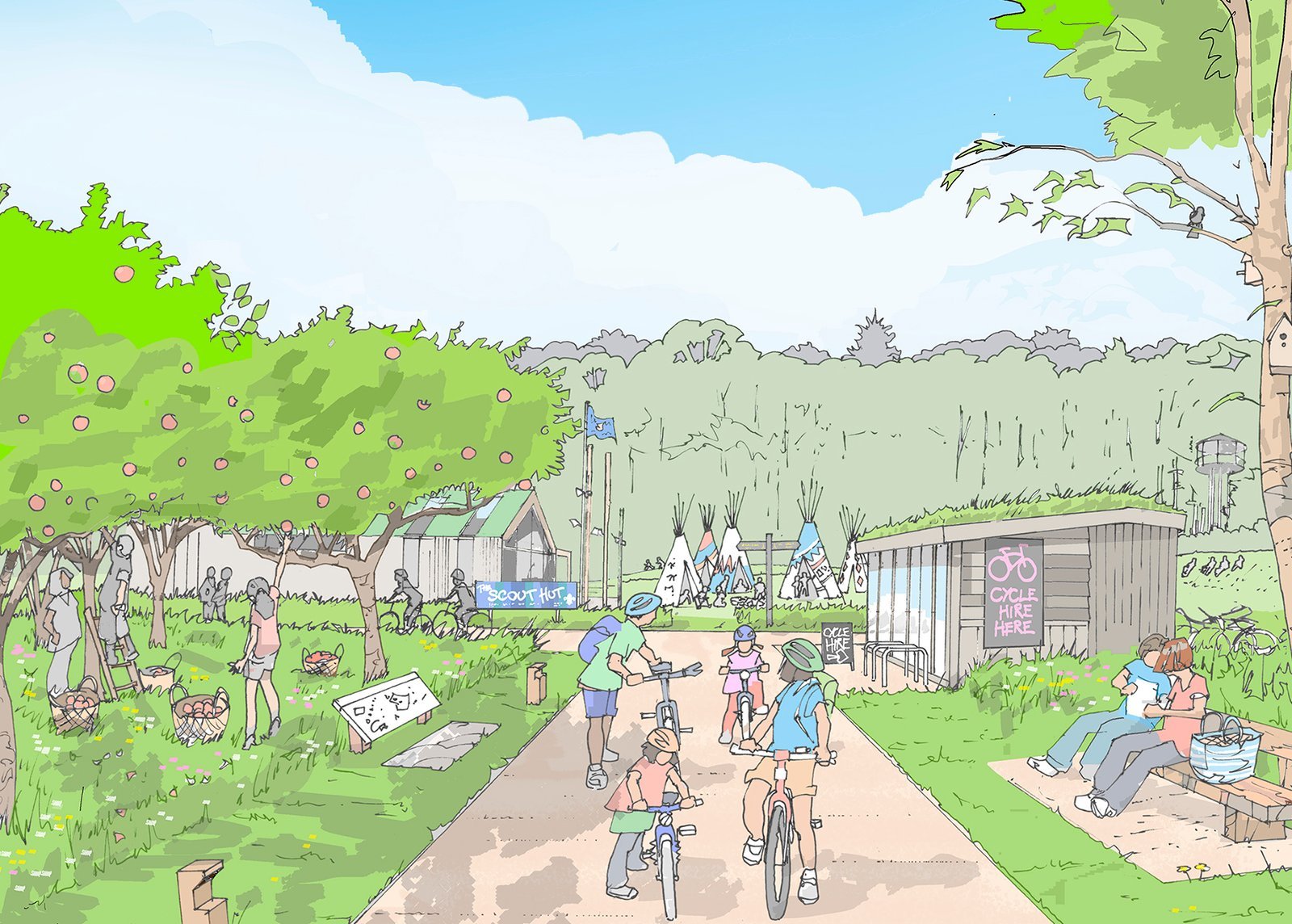 Sometimes I’m asked to draw on my experience with design and just invent something. I’ve provided illustrations for leading Landscape Architects, Urban designers, Architects, Interior designers, Garden designers, Property developers and others, for projects in the UK and around the world. Sketches have featured in design journals, in press releases, as illustrations for public engagement and planning applications and as promotional material.