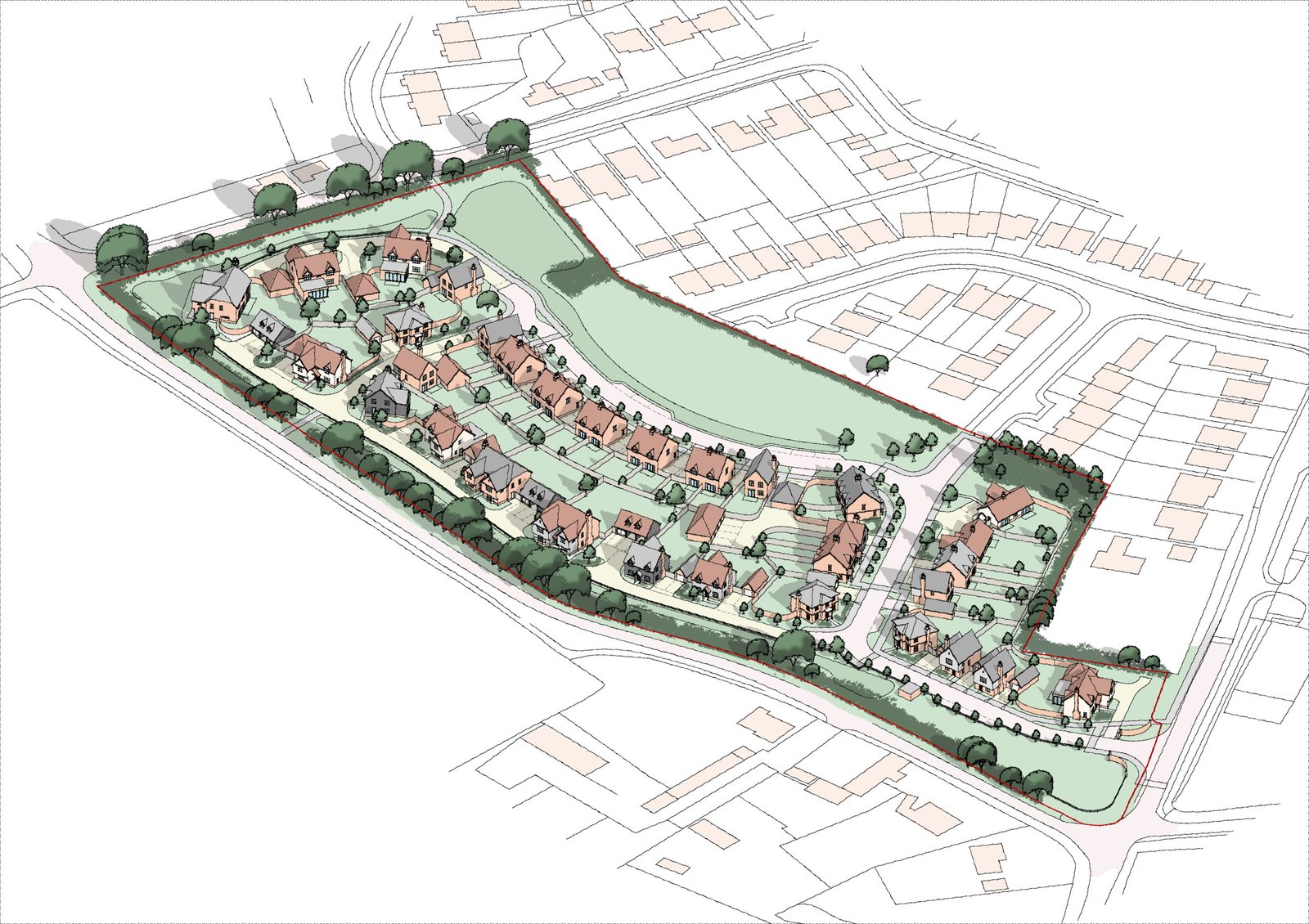 I have been working in Architectural practice for over 20 years and set up my own practice in 2015. Prior to that I worked for a variety of practices in London and East Anglia. As time went on I began to specialise more and more in the housing sector and our practice provides masterplanning, urban design and planning services for developers and housebuilders of all sizes. Due to type of work we carry out, it lends itself to a variety of approaches when it comes to illustrating schemes. I often, particularly in the early stages of a project, produce work carried out solely by hand in the form of sketch site layouts and perspectives. Its not normally until the latter stages that I carry out CGI’s.